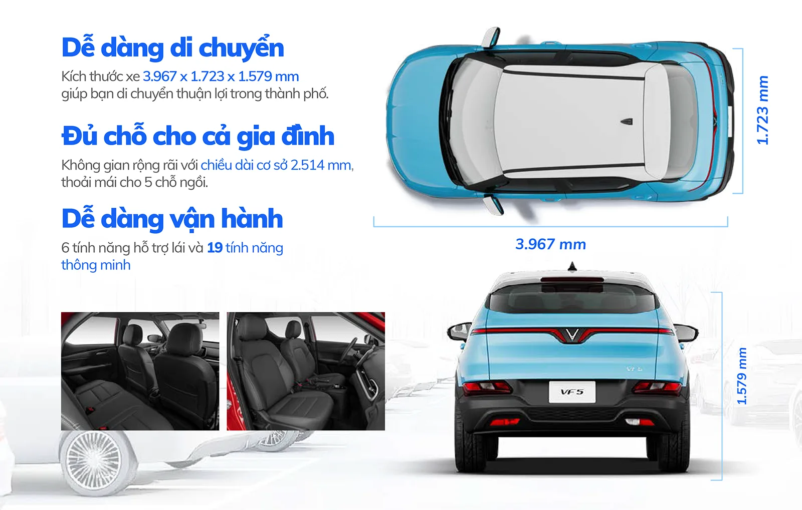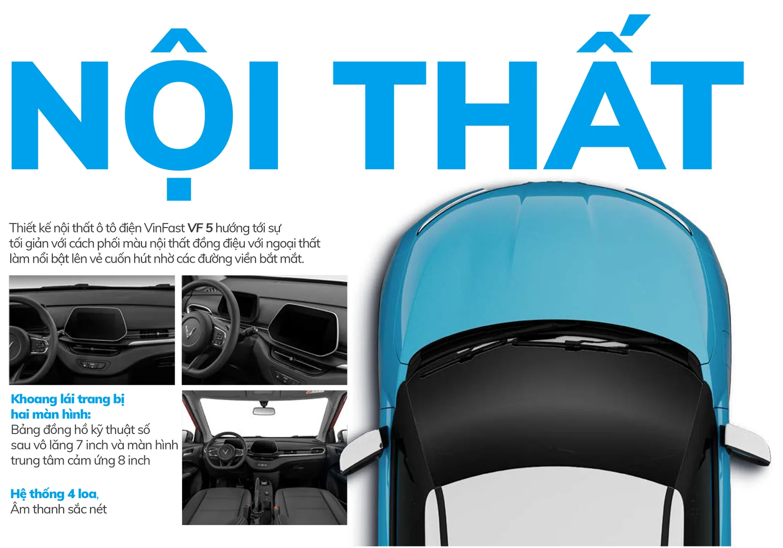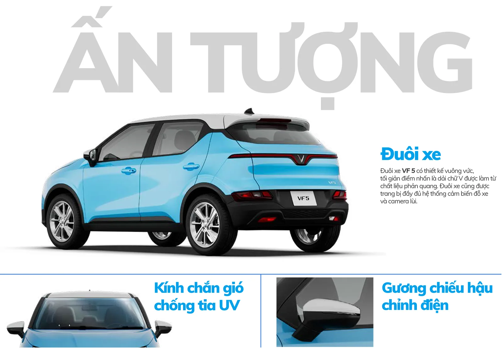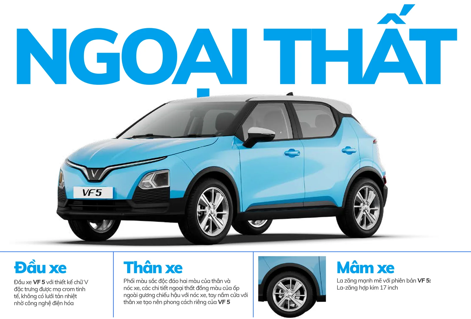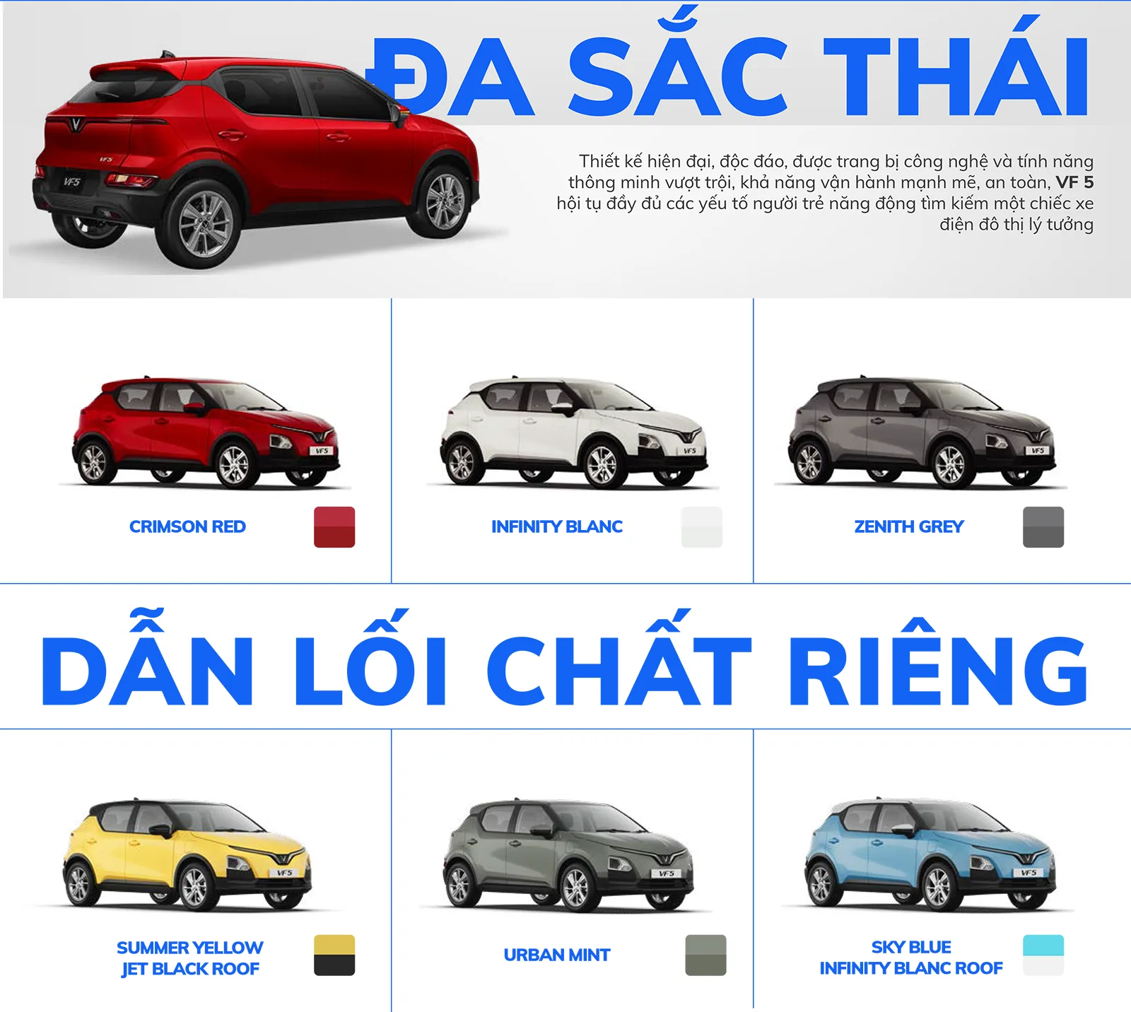 VF5 sở hữu thiết kế hiện đại, trẻ trung, cá tính và nổi bật với các lựa chọn phối màu nội ngoại thất, đảm bảo cá nhân hóa theo phong cách sống, cá tính và sở thích của mỗi khách hàng.