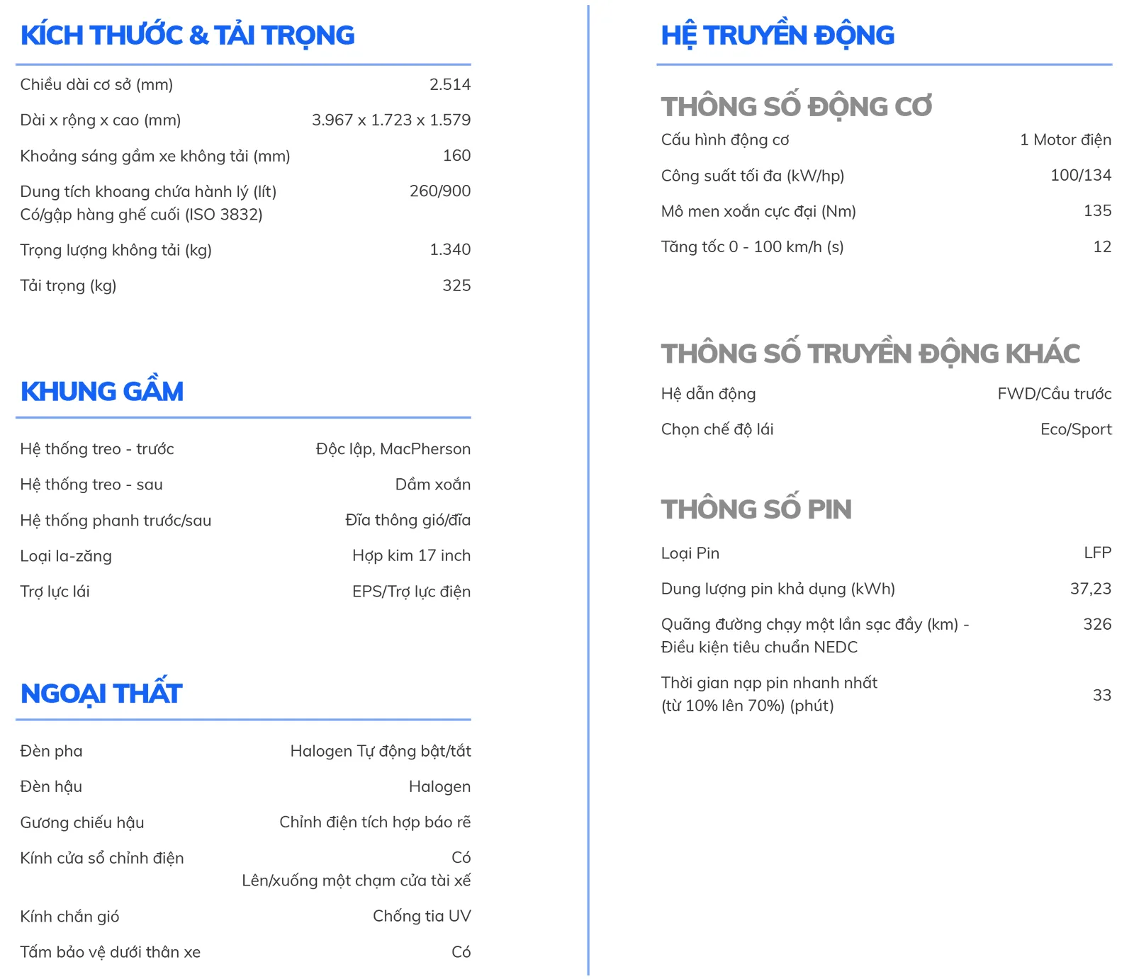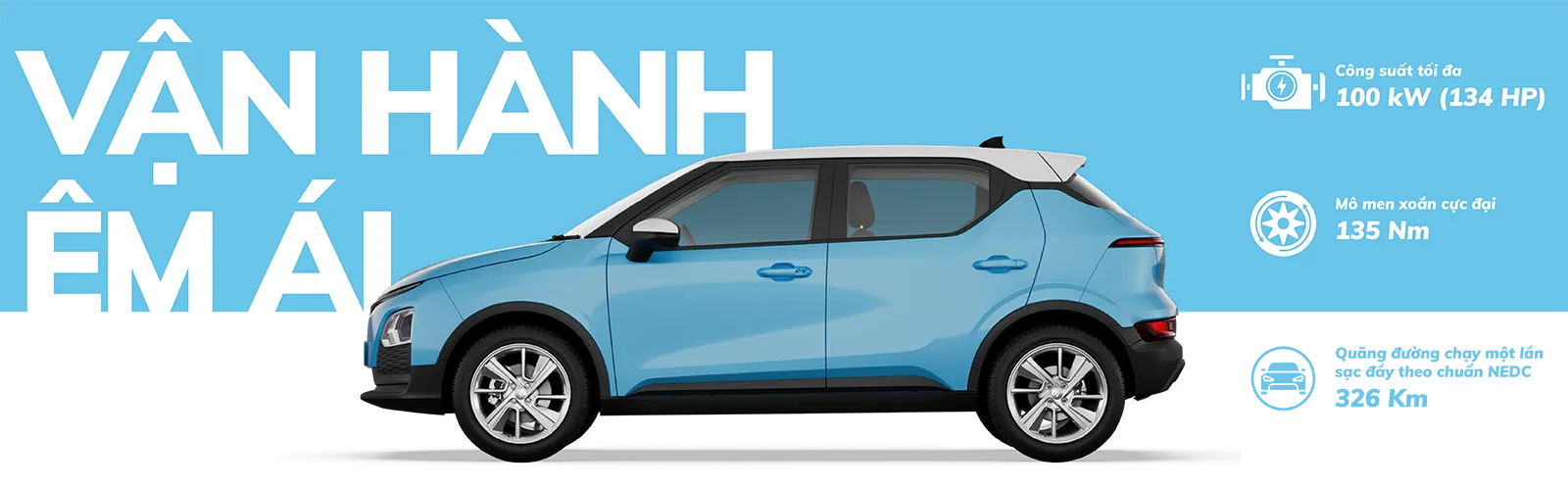 Quãng đường di chuyển (chuẩn NEDC)* 326,4 km/lần sạc
